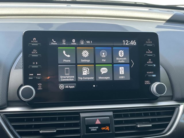 - Radio: 180-Watt AM/FM Audio System -inc: 8 speakers 8 display audio w/high-resolution electrostatic touch-screen knobs and hard keys for primary controls and customizable feature settings Bluetooth HandsFreeLink Bluetooth streaming audio SMS text message function Radio Data System (RDS) Speed-Sensitive Volume Compensation (SVC) HondaLink Apple CarPlay integration Android Auto integration 2 2.5-amp USB smartphone/audio interface ports in front console 2 2nd-row 2.5-amp USB charging ports illuminated steering wheel-mounted controls and gloss black fin-type roof-mounted antenna