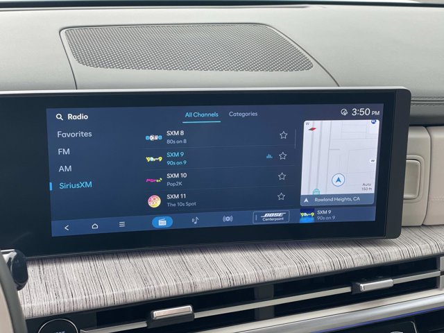 - Radio: AM/FM/HD Bose Premium Audio System -inc: 12 speakers including subwoofer external amplifier 12.3 wide touchscreen Apple CarPlay and Android Auto Bluetooth hands-free w/wireless audio streaming dynamic voice recognition USB connectivity SiriusXM Blue Link connected car system navigation system including traffic flow w/incident data via HD Radio (HERE) and rear seat quiet mode